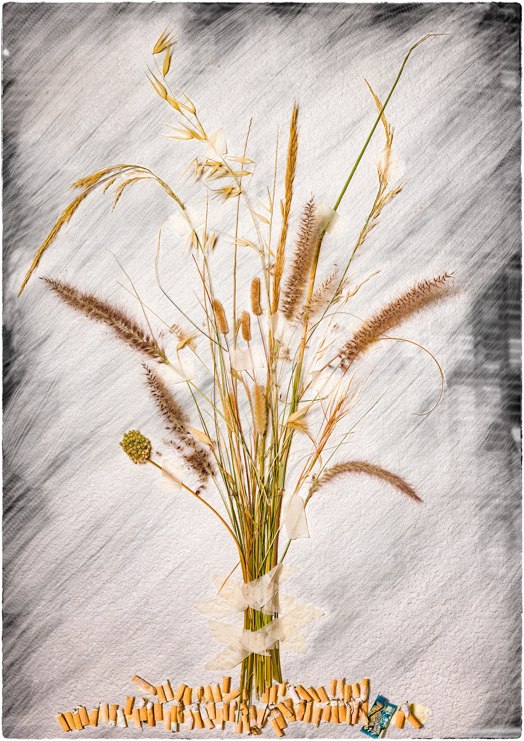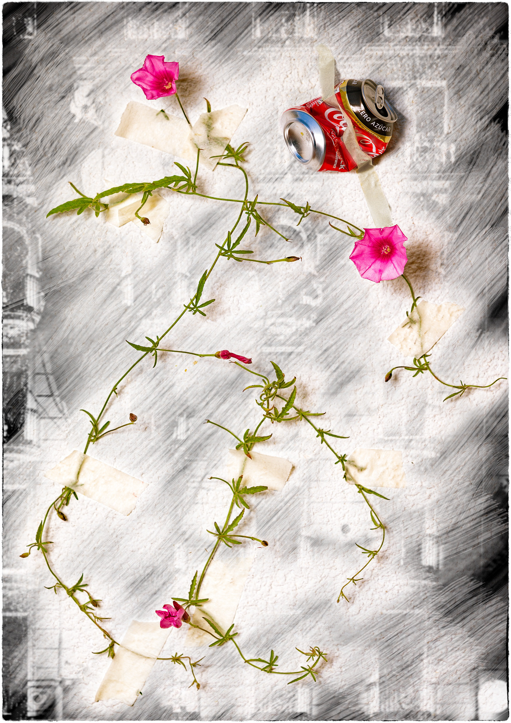 Durante 2 meses estuve recogiendo las yerbas y flores y la basura que dejamos entre ellas. Esta serie pretende servir para reflexionar sobre nuestra relación particular con nuestro entorno.